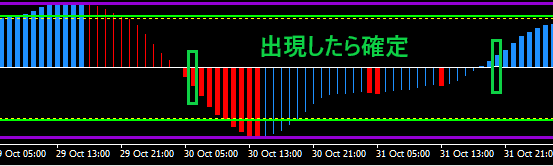 僕の場合ですと、オシレーターの色転換2個目 あるいはオシレーターDXがクロスした直後の2つが優位性が高いと感じています。