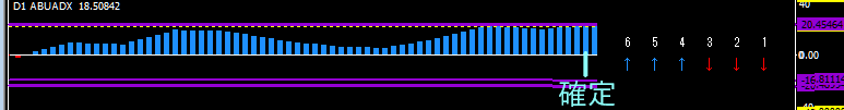 ABUDMIもADXと同じく、ローソク足が確定したら表示されます。