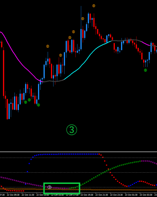 ③の特徴は、上位足2つが同じ±80の圏内にいるので、そこそこ範囲がひろい