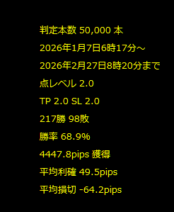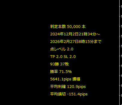 できるだけ勝率を得つつ、獲得pipsも得られるような設定となっています。