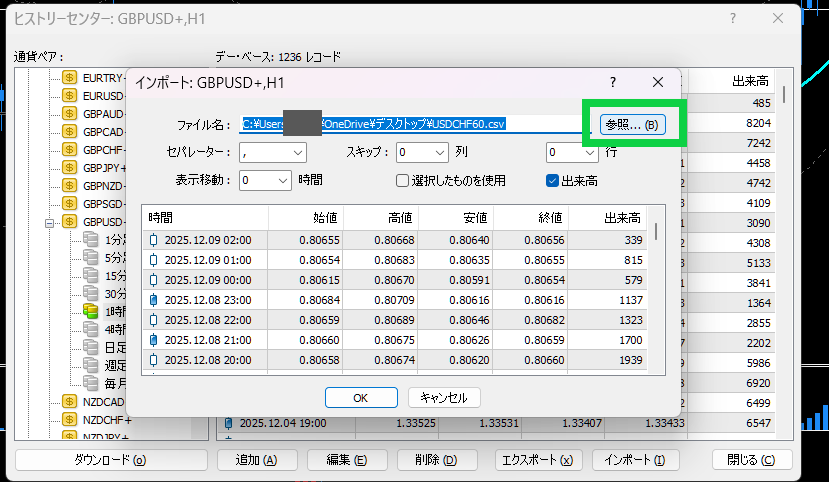- インポート後は MT4 を再起動