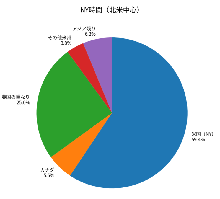ロンドン時間は翌日1時に終了するため、残り5時間はNY時間となります。