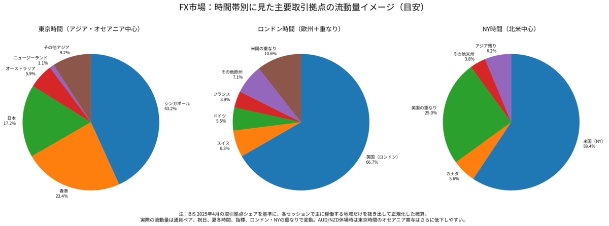 東京時間・ロンドン時間・NY時間 それぞれどの国がどれくらいの流動量があるのか