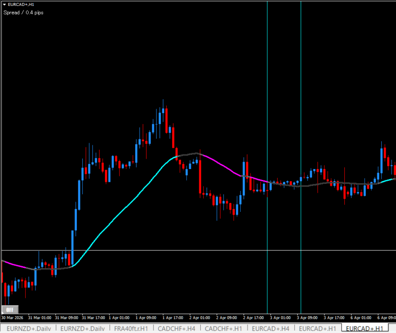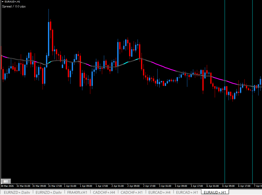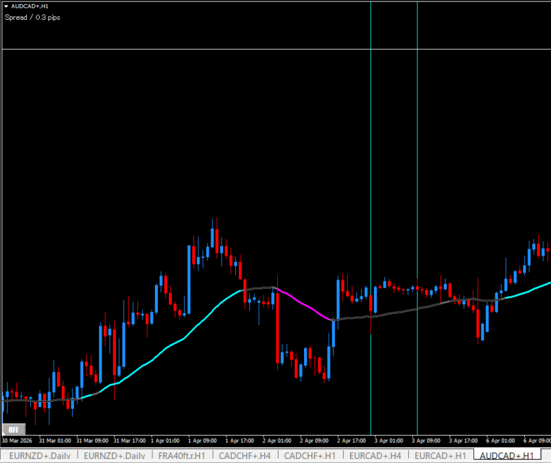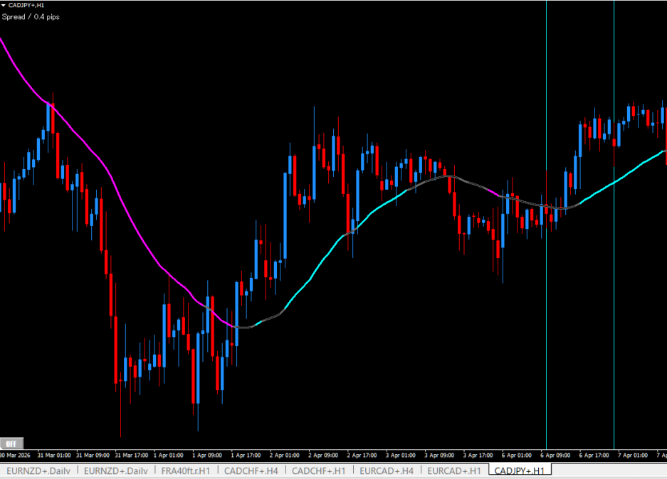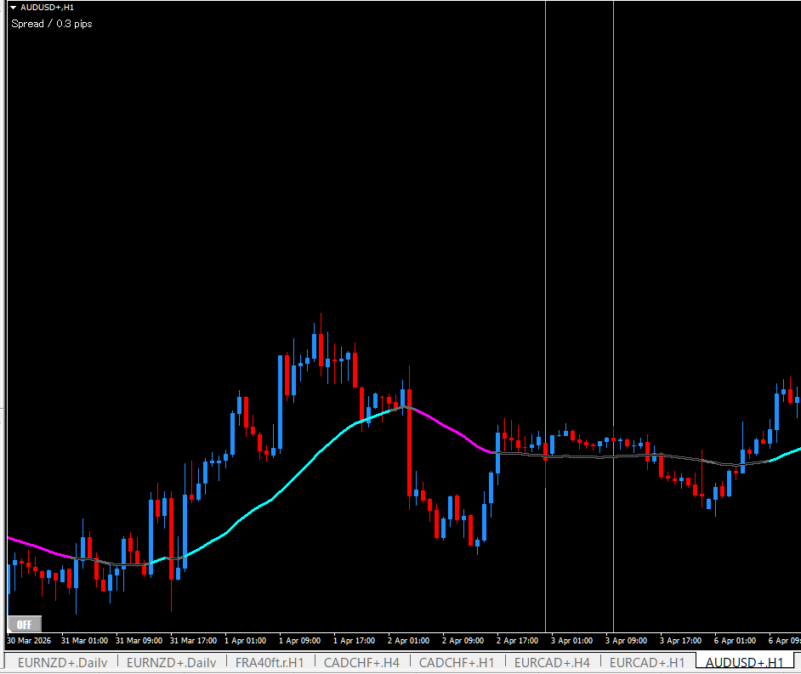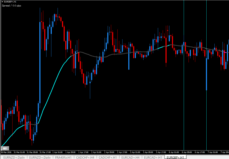 その後、裁量トレードと基本からコツコツ学びなおし、「天と地インジケーター」に出会いました。
