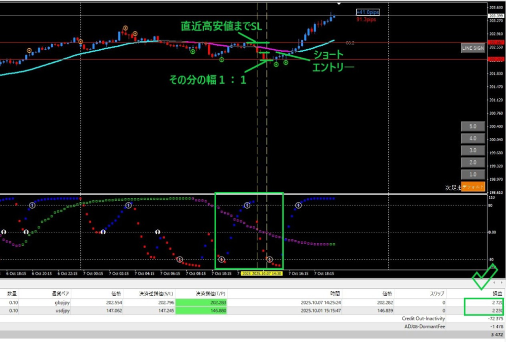 負けトレードは、TF2が張りつき状態のところだったのですが、