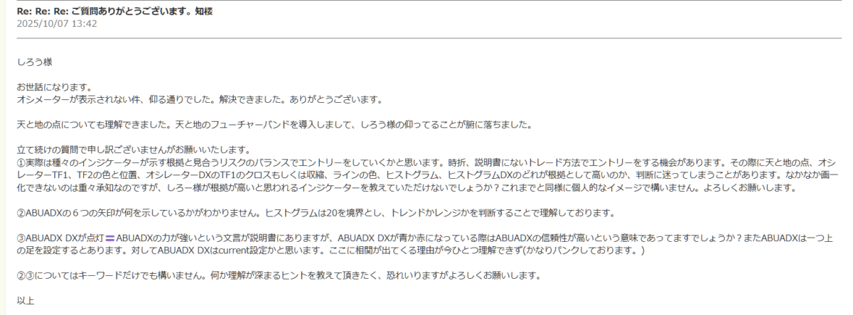 ※天と地のEA・あぶさんシグナルは所持していないため、返信できません。 - すでに天と地のインジを購入済みの場合はどうなりますか? また、サポートを受けている場合は?
